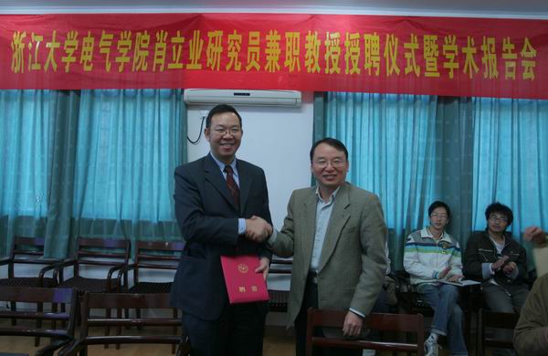 2009年11月3日下午,中国科学院电工研究所所长肖立业研究员兼职教授授聘仪式暨学术报告会在玉泉校区教二405会议室举行。授聘仪式由mg4355线路检查官网党委书记王瑞飞主持。中国科学院电工研究所科技处处长王海峰、mg4355线路检查官网工学部副主任徐德鸿、学院副院长(主持工作)韦巍、副院长何湘宁、学院党委副书记毕建权、王玉芬出席了授聘仪式和报告会。学院电工理论新技术学科的倪光正、陈隆道教授、电力电子与电力传动学科的部分教师、以及学院相关学科的研究生参加了报告会。