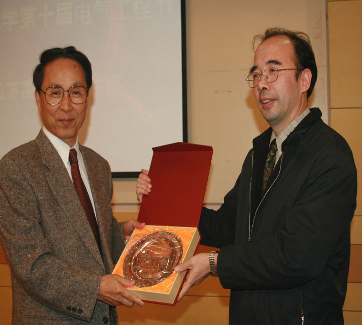 讲座最后,学院王瑞飞书记代表广大师生向四位主讲来宾赠送了极具浙大特色的纪念品。这次讲座既让同学们了解到了科学前沿知识,又拉近了自己和日本国际名校之间的距离。本次讲座在热烈掌声中结束,但是第十届电气工程节的精彩仍在继续,让我们共同期待!
