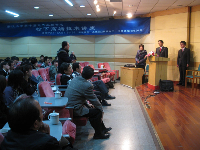 随着考试周的结束和冬学期的开始,mg4355线路检查官网第十届电气工程节继续着如火如荼的活动。11月23日下午2点,本届电气工程节来到了玉泉校区进行它在开幕式后的第二个活动——松下高端技术讲座。玉泉校区永谦B座二楼报告厅里座无虚席,一场精彩的讲座令同学们了解到了一些目前最尖端的电气信息知识;同时,大阪大学留学项目介绍也让对日本留学感兴趣的同学有了进一步的了解,对自己未来的留学之路充满了希望。