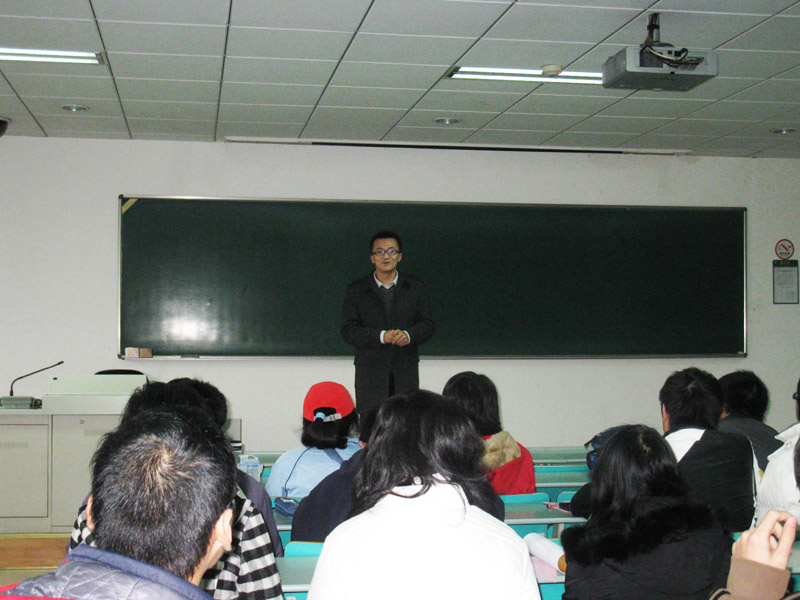 在班会的最后阶段,同学们向老师及学长组咨询各个方面的问题,如学习方法、专业就业去向、选课、保研。大家纷纷吐露心中的疑惑,讨论热烈,交流之中增进了彼此的感情,也把活动气氛推向高潮。