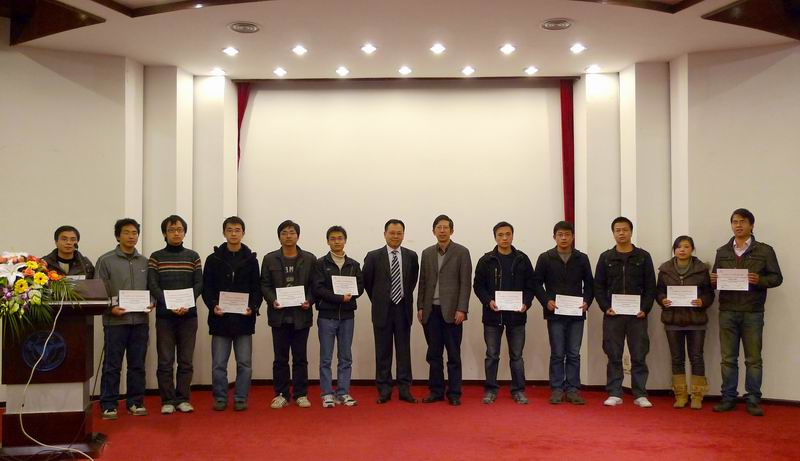 在学院党委书记王瑞飞老师宣读完获奖师生名单后,学院领导和各设奖单位嘉宾一起给获奖者颁发了证书。最后,获奖学生代表上台发言,颁奖典礼在热烈的气氛中圆满结束。