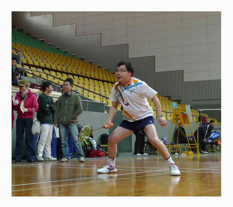冬日宝贵的阳光搭载着凛冽的寒风从天窗斜射到羽毛球竞技场上,为即将开战的双方队员平添了一丝暖意。伴随着裁判员一声令下,男单第一场和男双第一场开赛。男单第一场的双方选手势均力敌,在一阵拼杀过后,学生队选手15:21遗憾败北;而与此同时,男双第一场的双方选手却实力悬殊,教师队“不败组合”---何奔腾、徐亮老师组合以21:5的大比分胜出。随后女单、混双第一场和男单第二场闪亮登场。女单的比赛可谓是精彩纷呈,诡异的发球,神奇的扣杀,精彩的救球直教人拍手叫绝,大有巾帼不让须眉的气魄,最终学生队选手以以21:15胜出;混双第一场的双方选手实力悬殊,教师队以21:8轻松取胜;男单第二场的比赛学生队选手最终以21:13力挫对手。在其后紧锣密鼓进行的是混双第二场、男单第三场和混双第三场的比赛。虽然学生队吸取了前面双打大比分落后的教训,更加注重了配合与协作,打出了一个又一个精彩球;但还是被实力强大的教师队所压制。在混双的第二场和第三场学生队分别以15:21和17:21的小差落败。