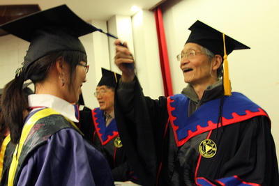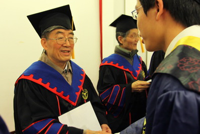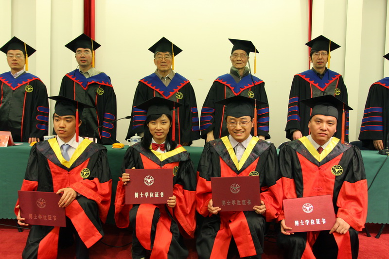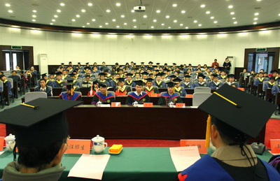 典礼在雄壮的国歌声中正式开始。副院长甘德强老师宣读2010届春季毕业研究生及授予学位人员名单。伴随着欢快的乐曲,各位老师为毕业研究生颁发学位证书,将他们学位帽上的流苏由帽的右前侧中部拨到帽的左前侧中部,并与他们亲切握手、交谈,衷心地祝愿他们顺利完成学业,踏上人生新的征程,奔赴祖国各地建功立业。