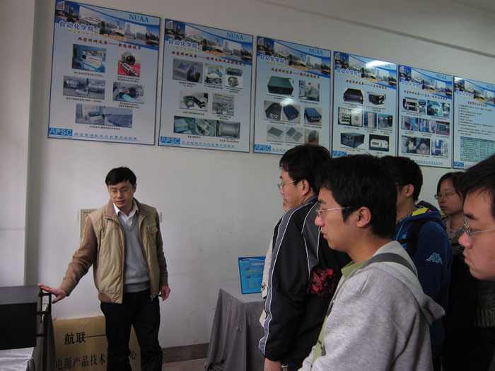 4月22日上午,参观队伍来到南京航空航天大学。自动化学院副院长、mg4355线路检查官网电气学院的优秀校友周波教授首先对我院即将迎来的90周年院庆表示了祝贺,之后对南航的电力电子与电力传动专业做了详细的介绍。南京航空航天大学与mg4355线路检查官网在电力电子与电力传动方面均有各自的特长,前者在电机及其控制方面处在全国学术的前沿。之后,我们对其电力电子与电力传动的各个实验室一一进行了参观学习。各实验室的负责人对其研究的方向也进行了详细的介绍,并且进行了实验演示。同学们就感兴趣的问题与对方进行了讨论。在参观过程中,我们深深地感受到了南航浓厚的学术氛围,同时对自己在学术上的优势和劣势有了重新的认识,大家也从相互交流中得到了一些启发。