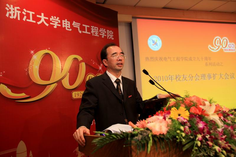 电气学院常务副院长韦巍在欢迎辞中首先对各位理事的到来表示了热烈的欢迎,并就电气学院近一年来各工作开展情况向各位理事进行了介绍。在过去的一年中,电气学院制定了“十二五学科建设与科技发展规划”,分析了学科发展的现状,提出要集中建设4个学科平台、凝练15-20个学科方向、瞄准3-5个国家重点工程。学院“211”三期重点学科建设项目“基于新型能源的电科学理论和技术”进入实施阶段。继续实施“人才强院”战略,学院基于学校“1311”人才计划提出“3135”人才计划,并将一如继往注重青年骨干的培养。同时,韦院长欢迎各位理事、校友向学院推举贤才,支持母校教育科研事业发展。在科学研究方面,电气学院喜获丰收,获得国家二等奖1项、省部级一等奖2项(含1项参与)、省部级二等奖2项。2009年科研经费再创历史新高,并提出2010年继续有所突破。在本科及研究生教育上,学院适应学校培养模式的改革,积极应对,搭建相关平台,教学成果及各项竞赛屡屡获奖。各类学生科研竞赛成绩喜人。校企合作又有新突破,新设奖学金4项,王国松基金会受捐赠已增至450万元。韦院长向各位理事、校友长期以来对学校和学院建设,尤其在过去数月中对院庆各项筹备工作给予的关心和支持表示由衷的感谢,希望大家齐心合力,在未来十年内开拓创新,铸就百年辉煌!