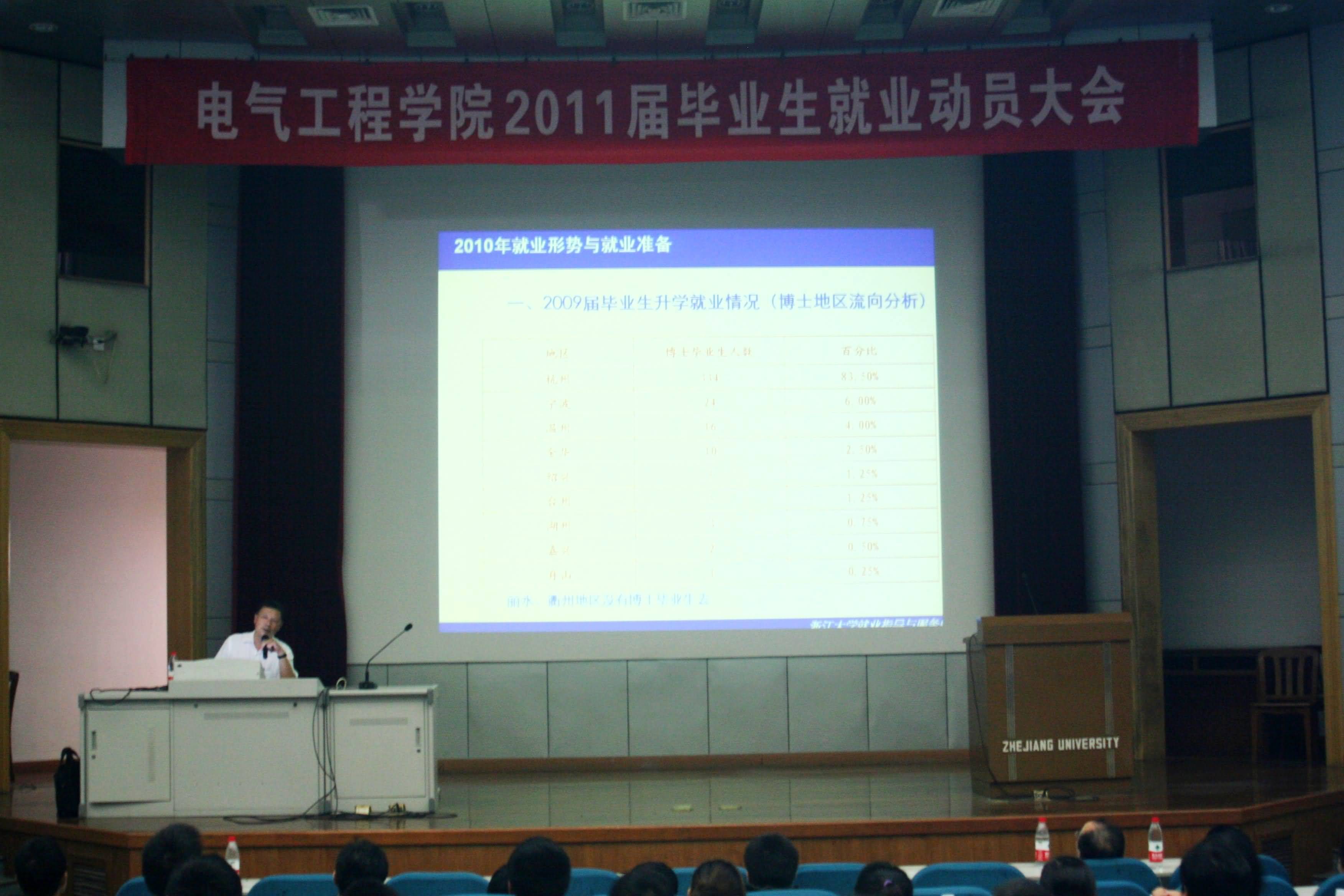 2010年6月18日mg4355线路检查官网2011届毕业生就业动员大会在玉泉校区教七多功能影视厅胜利召开。校就业指导中心主任陈谷纲老师、院党委书记兼副院长王瑞飞老师、院党委副书记毕建权老师等出席了本次大会。包括本科、硕士、博士生在内的近500名2011届毕业生参加了此次大会,现场座无虚席。会议由毕建权老师主持。