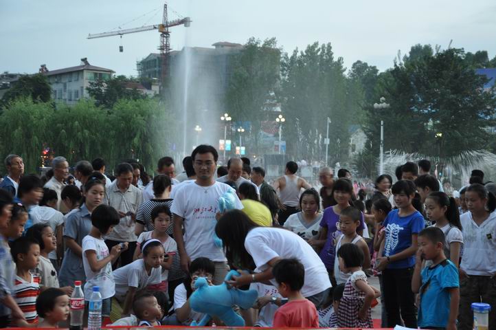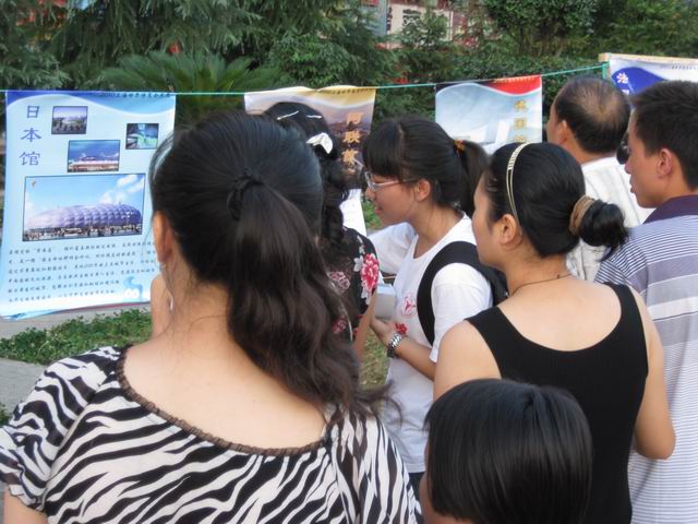8月7日下午,挂职团成员来到湄潭县城茶乡广场,进行“走近上海世博,感受生活魅力”宣传活动。 本次活动旨在向湄潭市民宣传上海世博会及其热门展馆,让大家走近上海世博,感受“城市,让生活更美好”的主题。广场东侧的世博展馆海报区和西侧的世博纪录片播放区吸引了众多居民。广场中央设置了一条签名横幅,上至年过七旬的老人下至牙牙学语的孩童都郑重地签下名字,以表对上海世博会的支持。“我与海宝来合影”环节中,许多小朋友到镜头前和世博吉祥物海宝一起留下最美的笑容。 活动于晚上9点结束,广场上的人们仍意犹未尽。最后,挂职团成员们在美丽的茶乡广场合影留念。在回去的路上,听着路边群众由衷的赞许、看着孩童们兴奋的笑脸,大家的疲惫也一扫而空,对接下来挂职工作的顺利开展也充满了信心。