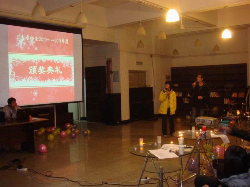 2010年12月25日晚,mg4355线路检查官网E志者协会在紫金港校友书屋举行了2011新年晚会暨2009~2010优秀会员颁奖典礼。值此圣诞之夜,晚会围绕“梦幻圣诞夜浓浓E志者情”展开,E志者协会会长龚剑波,分会长赵生龙等E志者全体成员参加了此次晚会。