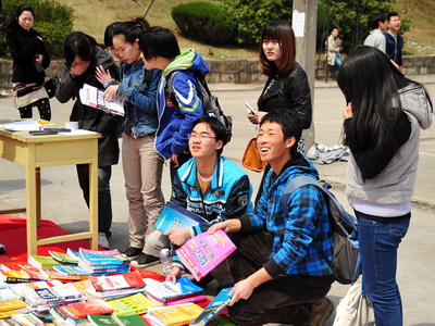 活动现场人声鼎沸,书摊跟前人来人往。学弟学妹们积极挑选着自己需要的书籍,各位毕业生党员也热情地向他们介绍各类书籍,现场气氛非常高涨。在赠书过程中,毕业生党员号召学弟学妹们用低价的钱换取书籍,所得钱款将捐给贫困灾区,献一份爱心。该号召得到了热烈响应,人群中不时爆发出阵阵赞美声,同学们得“书”之恩惠,慷慨解囊。不少同学在得到书籍的同时,写了感谢语:“谢谢学长学姐,这个活动很有意义!”、“谢谢学长学姐的书,明年我们继续传承下去!”、“学长学姐真给力!活动很好!”,真挚的话语表达了感激之情。本次活动历时3小时,总共赠书159本,得到书款585元。剩余的书籍名单将在cc98“E电园”的帖子“我向学弟学妹赠书物”中列出,望更多的学弟学妹来领取。