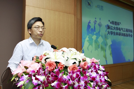 陈甦坚先生的精彩演讲让所有与会者都对e络盟有了更为深入的了解,而接下来杨敏虹老师的讲话则让参与科研训练的同学对计划的实施流程和学校的相关管理政策有了系统性的认知。杨老师首先结合电气学院的自身特点从立项数量、项目质量以及项目研究成果等方面向大家展示了电气学院大学生科研训练的开展情况。同时她还详细介绍了电气学院国创、省创以及SRTP的相关管理办法,其中包括了答辩形式、经费管理、评优奖励等许多与广大参与科研训练计划的学生息息相关的话题。在最后的总结中,杨老师则表示学院科研训练计划的管理方式近几年已凸显出良好的终端效应,但是还有待进一步完善,希望更多的电气学子能在本科生阶段通过科研训练获得锻炼。
