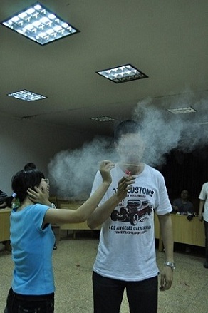 而更具特色和喜感的就是各种惩罚,同学们不仅目睹了彩裙舞的诱惑、男女对视的深情、搞笑的表白、粘满面粉表现出无辜的表情、还有猴子在板凳上那滑稽的姿势。大家都在欢快的笑声中度过。同时在男女合作,最后男生甘愿为女生惩罚的豪情,更是体现了在班级只有7个女生的情况下,男生的奉献精神。