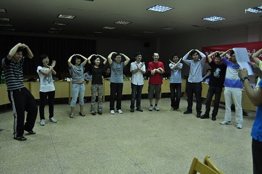 先全体起立,主持人问问题。题目由易到难,大家就根据自己的判断做出两个反应:Yes or No,错的同学坐下。主持人继续提问,直到人数少于5个。邀请到讲台上进行。最后决出冠军亚军,颁发礼物。其中Yes用双手伸到头上作出爱心姿势表示;NO用双手在胸前作出叉叉姿势表示。可爱的姿势加上疯狂的气氛,在激动人心的氛围中决出了最后的王者。