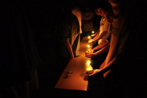 之后这个活动是一个最神秘的、感人的环节,5月份生日的同学都通过活动被罚,这是早有预谋,还是天意?哈哈,你们懂的。他们眼睛被蒙着眼罩,大伙把蛋糕摆上,点蜡烛、熄灯、优美的歌声,卸下眼罩,一系列的动作,最后剩下几位“被惩罚者”惊喜与感动。周这一幕如此温暖,电气0703 我们永远的家。