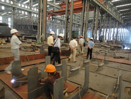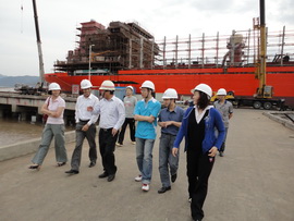 在枫叶公司,大家深入公司生产车间和舾装码头等现场参观考察船舶制造的各个环节,认真听取企业负责人的船舶制作工艺介绍,交流相关的技术问题。在方圆公司,教授们围绕企业提出的船舶制造业发展中遇到的技术难题展开了讨论。走访中,企业的决策者对专家教授们提出的新型船用装备和制造流水线焊接机器人等研究方向表现出了很大的兴趣,希望今后能够进一步加强互访,加强合作。通过此次的考察交流,双方增进了解,为下一步的技术合作和服务奠定了良好基础。