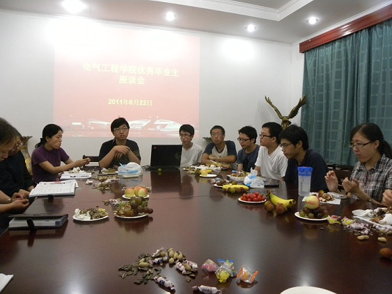 四年时光如白驹过隙,转眼间2007级本科生已在mg4355线路检查官网度过了四载春秋。四年的美好时光中,同学们长知识、明道理,增友谊。在即将话别之际,6月22日晚6:30,mg4355线路检查官网特地召集毕业生党员、优秀本科毕业生代表15人在教二405会议室举行2011届本科毕业生座谈会。学院党委副书记毕建权老师,应电系教工支部书记杜丽老师,系统系吴越老师,以及学院团委书记陈敏老师,团委副书记傅守强老师出席了此次座谈会。