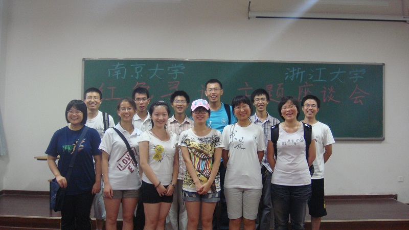 吃过午饭,实践团队乘车来到南京大学仙林校区,受到了南京大学同学的热情接待。在南大同学的带领下参观完校园后,浙大和南大的同学们在择善楼一间教室里举行了红色寻访主题座谈会。会议由实践团队队长周贺主持。首先,两校同学分别对各自的社会实践情况做了简要介绍,并进行了交流对比。其次,同学们就“红色精神”在社会实践中、在生活中的实例及影响等展开了热烈的讨论。同学们纷纷表示,以后会通过多种多样的形式在学习工作生活中践行红色精神,让红色精神代代相承。会后,浙大和南大的同学在南大食堂共进晚餐,两校同学的友谊进一步加深。