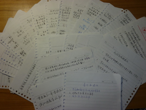 “我对学院发展提建议”是特别行动的第四个子活动,毕业班的同学在学院、在学校已经学习生活了4年,对浙大生活已经有了自己深深的体会,所以在毕业季我们设计了给学院发展提建议的活动,接受的建议基本覆盖整个07级各专业同学,大家畅所欲言,对专业课程学习、科研训练、学生社团、保研、住宿等方面都提出了自己的意见和建议,共收集到200多条。党支部对建议进行了分类汇总交予学院,希望可以对学院今后的发展提供参考。