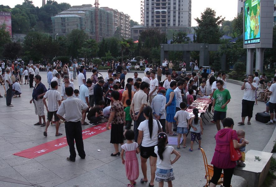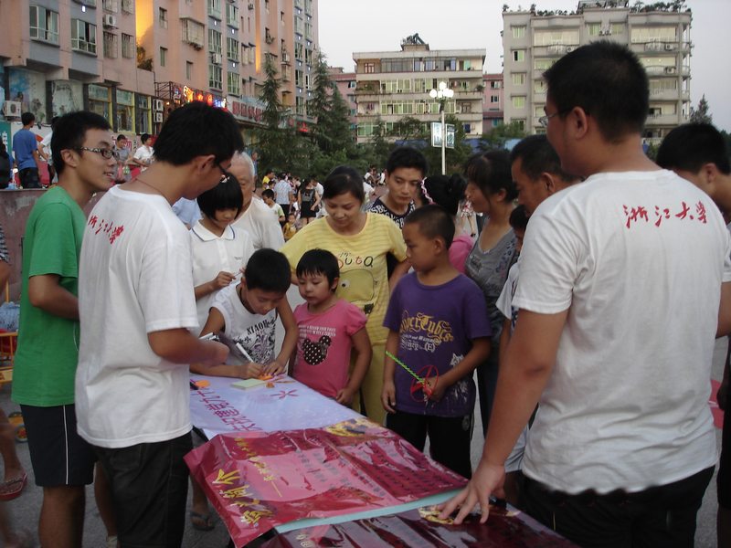 8月9日下午,mg4355线路检查官网赴贵州红色寻访实践团队一行来到湄潭县城茶乡广场进行“祝福建党九十周年”党史宣传活动。一时间,傍晚的茶乡广场,人潮涌动,现场气氛十分热闹,高潮迭起。