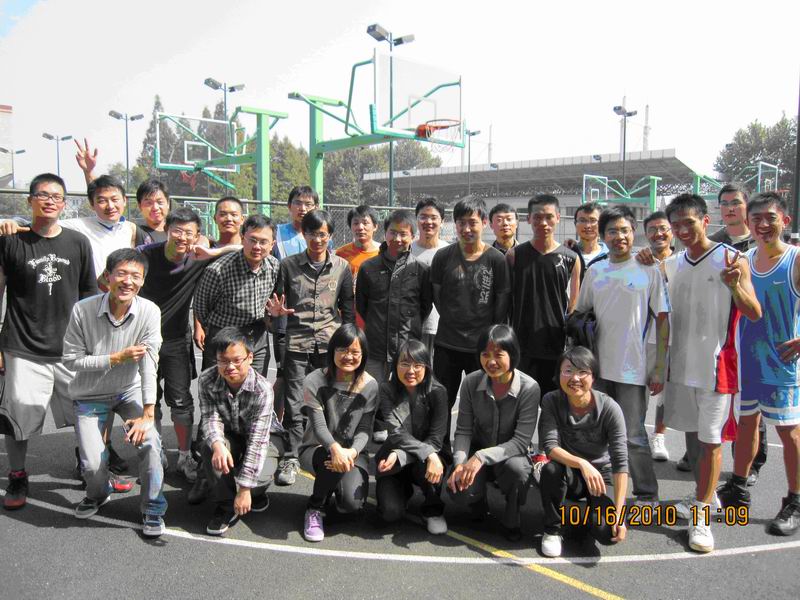 2010年10月17日(农历二〇一〇年九月初十),为了让研一的新生更快更好地融入到电工电子这个大家庭,同时为了丰富大家的课余生活,我们组织了一场新生老生篮球对抗赛,班主任潘老师也来到了比赛现场,为大家加油助威。比赛激烈而紧张,最后研一的同学们在体力不支,实力也确实偏弱的情况下,输掉了这场友谊赛。但是,比赛的输赢并不是这次活动的关键。