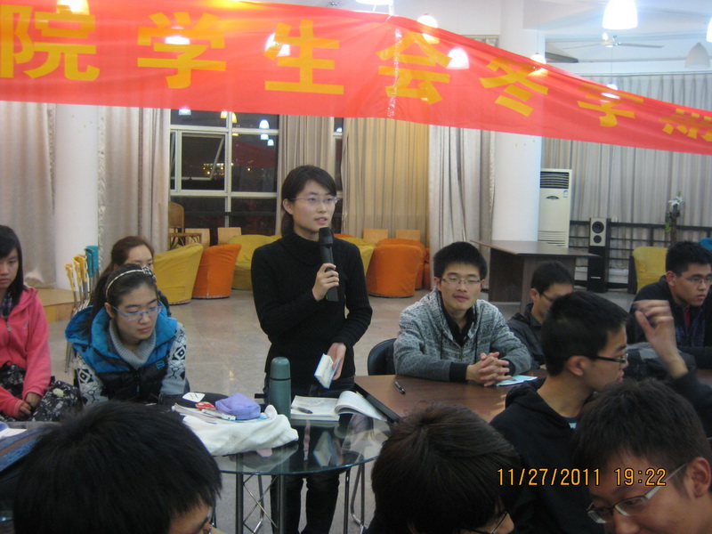 大会首先由主持人向大家介绍了秋学期学生会已经完成的各项活动基本情况,并按照活动大类再次向大家介绍了活动开展过程中的一些主要流程和注意事项。随后,大会进入交流讨论环节,由四个项目组分别进行组内讨论,对自己小组秋学期所作的活动进行总结回顾,并针对活动中存在的问题进行反馈。