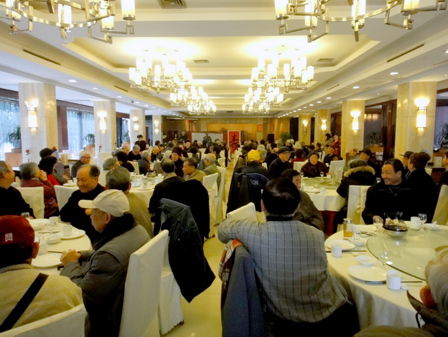 刘保墉老师发表讲话,今年学院共有191位离退休教师,刚刚又有9位老师进入80周岁的队伍,学院年龄在70周岁以上的老师共有141位,比例达到73.8%。他说今年党的政策好,大家赶上了好时代,都涨工资了,每个老师的脸上都洋溢着幸福的笑容,涨工资是好事啊,我提个建议,不如大家伙儿回去都想想要怎么花这个钱,争取把钱都花光,我们的老年生活也要过的更加丰富多彩一些。