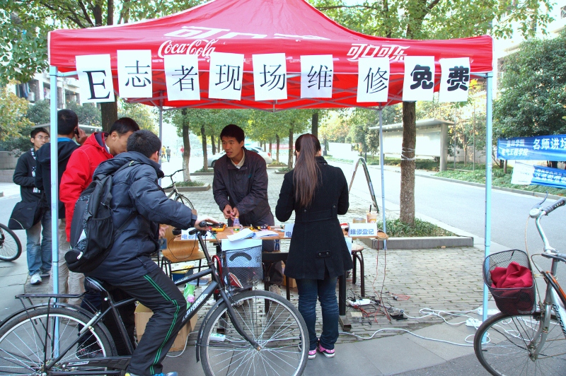 2011年12月5日是国际志愿者日,mg4355线路检查官网学生E志者协会的同学们,在12月4日、5日,以电器志愿维修的形式,在校园中掀起了志愿奉献、服务大家的热潮。本次志愿维修活动是在紫金港校区各学园门口开展的。