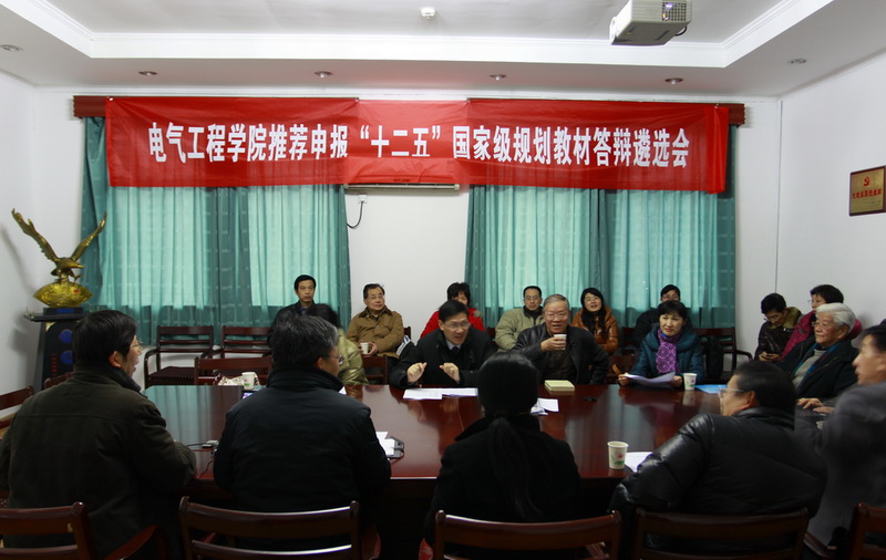 2012年1月9日下午,mg4355线路检查官网推荐申报“十二五”国家级规划教材答辩遴选会在玉泉校区第二教学大楼电气学院会议室举行,本科生院副院长、教学研究处处长陆国栋教授率队一行3人,工学部副主任徐德鸿教授、电气学院有关领导,各系专业学科主管本科教学主任,学院知名教授以及参加推荐申报的项目负责人参加了答辩遴选会。