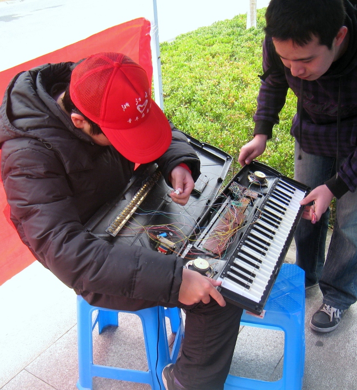 同学们工作热情高涨,赢得了居民们的大力支持。一些技术部的成员,在帐篷、椅子还未完全到位的时候,就开始站着为居民维修电器了。本次活动持续到下午14:00,大部分送修电器都成功修好。