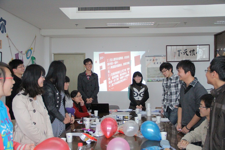 相互熟悉之后,10级的团委新成员们被分为三支队伍参加了团史知识竞赛。竞赛分为必答题与抢答题两个环节。在答题过程中,各支队伍精诚协作,特别是抢答环节中,各队争先恐后,现场气氛紧张而热烈。最终经过半小时左右的角逐,结果揭晓并向优胜团队颁发了奖品,而积分垫底队伍则接受了趣味惩罚。通过团史知识竞赛,我们更多的是发现了自己对团史知识的盲区,而题目答案的公布也是一次很好的学习机会。