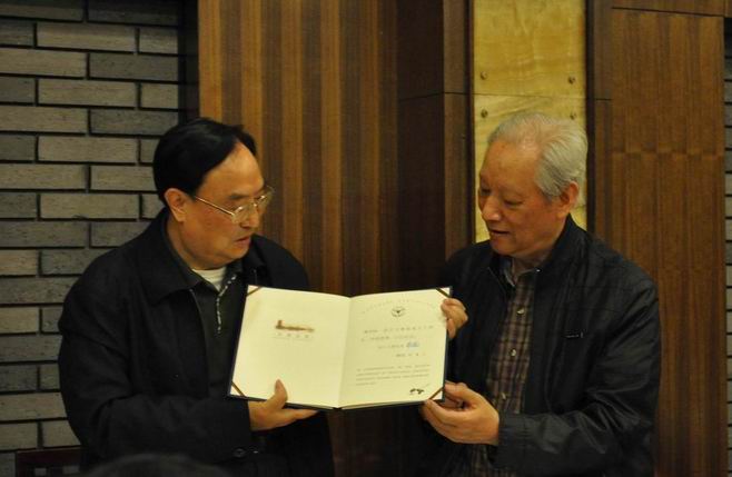 聚会中,张浚生主席还代表学校向老校友们颁发了浙大徽章和毕业五十周年的荣誉证书,小小一本证书承载了50年浓浓校友情。