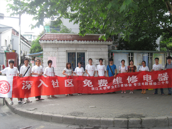 2012年6月29日,mg4355线路检查官网学生E志者协会暑期社会实践队走进翠苑三区,展开以“红色寻访,践行雷锋精神”为主题的系列社会实践活动——现场小家电义务维修。希望通过这次活动利用我们E志者协会的专业特长为社区的居民们服务,为社会做出自己的些许贡献。