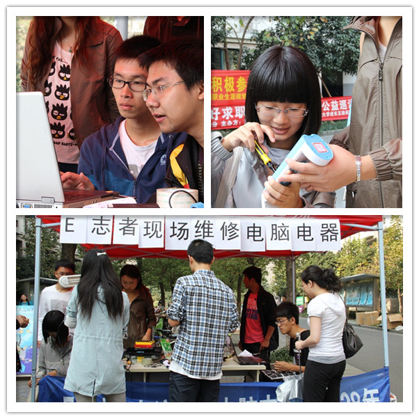 尽管社区和校园现场维修活动只持续了一天,但是E志者的志愿服务并不仅限于这一天。在东三-402,每个E志者都在真诚等候着需要帮助的同学。我们的心在社会,我们的爱在身边!