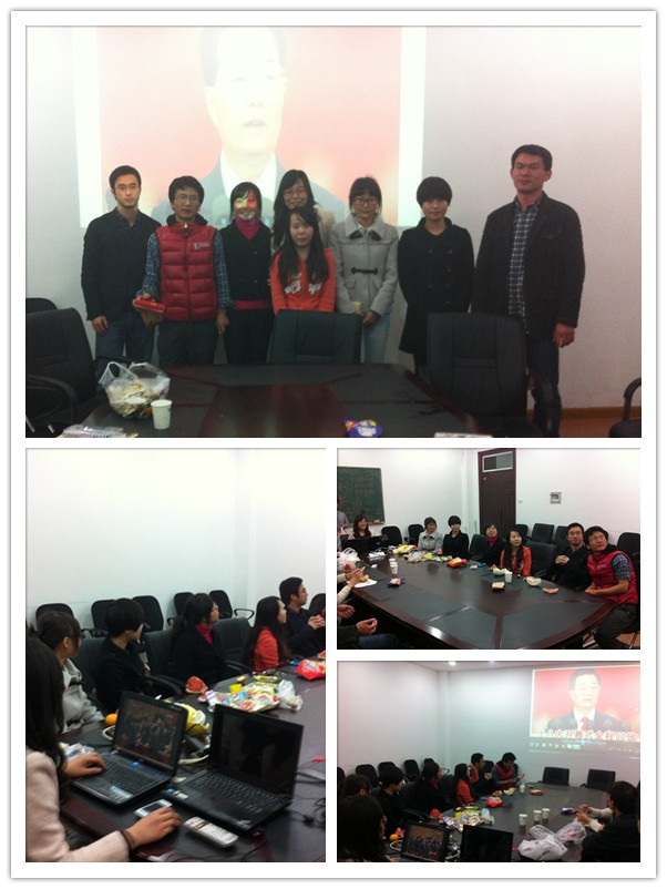 除了支部党员,本次活动也吸引了几名博士生老党员前来参加。活动主要分三部分进行的,首先,进行了十八大开幕式要点回放,针对总书记报告新提法各位党员纷纷发表了自己的看法。谈起过去十年来身边的变化,大家感慨万千、情绪高昂,感叹社会经济发展竟如此之快。