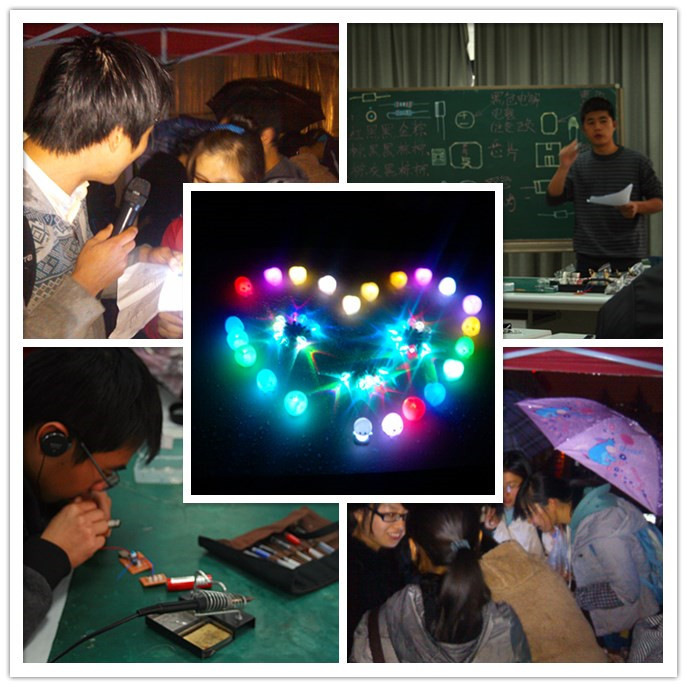 10月29日,由协会会长方鑫勇与6名干事组成活动项目组,并当即开始了活动的准备工作。数天后,制作完成的海报与横幅就被张贴悬挂在了校园的各个角落,在98、人人上也同步开始了网络宣传。不仅如此,协会更利用11月10日、11日的现场维修活动,向前来维修电器的同学们进行了活动的宣传。借助多种方式,很快就有相当数量的报名者提交了表单。场地与人手等工作也安排就绪。紧张过后,一切都在静静等待现场制作拉开大幕。
