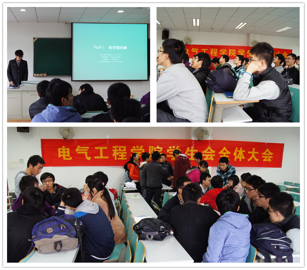 11月25日下午,电气学院学生会冬学期全体大会在紫金港西二313举行。会上,各组成员对秋学期学生会活动进行了总结和反思,随后学生会主席李妍、学生会副秘书长赵睿及主席团对各组发言作了简要的点评,并对以后的活动开展提出了建议。之后,电气学生会进行了第二次内部素拓。通过本次全体大会,各位成员对自己在活动中的得失认识更为深刻,也明确了以后需要努力改善的方向。