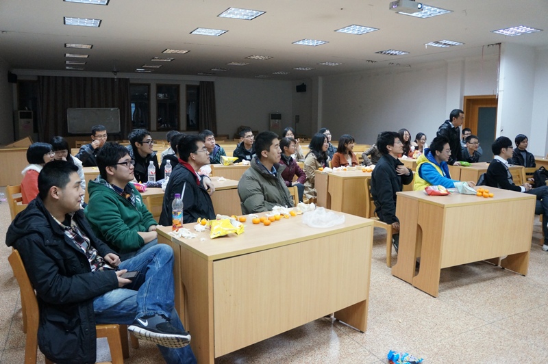 之后,进行了形同击鼓传花的问答游戏,被选中的同学若回答不出问题,尽管是接受“惩罚”,但却在欢乐的氛围中或高声唱着红歌,或认真表达对十八大的感想以及对中国未来的展望。