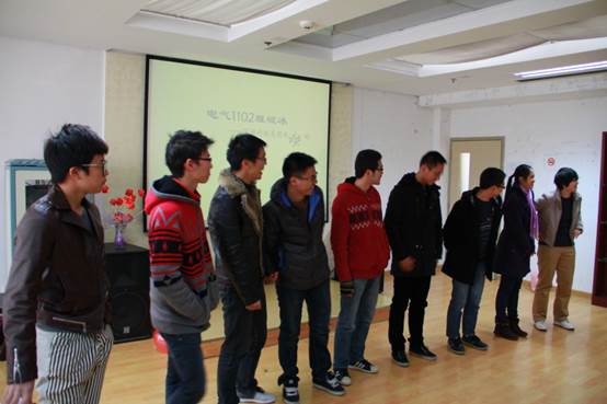 为增进新成立专业班级的凝聚力,促进同学们的友谊,让同学们尽快融入电气1102班的大家庭,2012年12月8号下午,mg4355线路检查官网电气工程及其自动化1102班在小剧场311活动室举行了破冰活动。