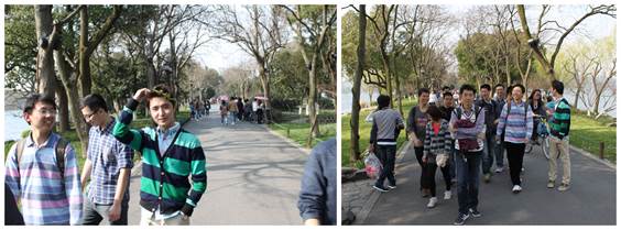 3月8日下午一点三十分,电信1003班的11名同学在新桥门集合,由党支部书记刘高见同学领队,在明确了本次“毅行”的路线后,11名电信学子开始了这次低碳环保的徒步出游。这次“毅行”的起点为浙大玉泉校区,途径苏堤到达中转站太子湾公园,预计下午五点到达终点站中国茶叶博物馆,全程约8千米,这将是对同学们体力和耐力的一次考验。