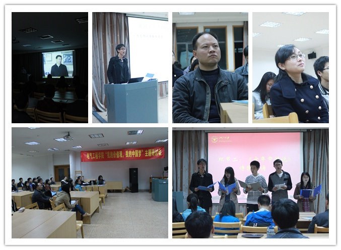 潘伟老师在小组讨论里和大家分享了几年前自己选择专业的经历,他回忆那时的自己被“智能电网”的尖端技术所吸引,因此定下决心要从事电力行业,要让智能电网技术早日惠及千家万户。沈樟彪学长则在小组讨论中说到了自己总结的“三个‘志’”,分别是“智慧”、“志气”和“志向”,并在交流中较为系统的阐述了三者的关系,以及三者的前后承接与中国梦的紧密联系。小组讨论中不乏妙语连珠,老师们和学长学姐们通过自己的经历,也借机向较低年级的学弟学妹们传达出了殷切的希望。