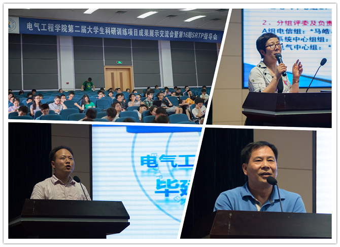为搭建对科研有浓厚兴趣的同学与已取得优秀成果的学长们的交流平台、促进大学生科研训练项目持续有效开展,2013年5月24日下午,由电气学院主办的第二届mg4355线路检查官网大学生科研训练项目成果展示交流会暨第16期SRTP指导会在紫金港校区临水报告厅举行。学院党委副书记毕建权老师、本科生院教研处科研训练与学科竞赛办公室主任毛一平老师、mg4355线路检查官网院长助理马皓老师,以及来自各学院专业的老师和负责教学与学生工作的老师参加了本次大会。同样来到大会现场的还有近50支近几届国创、省创以及SRTP优秀成果项目小组,用展板以及实物的形式在场外为评委老师与在场同学进行展示。