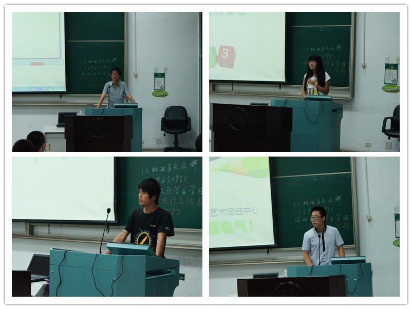 接着电气学院团委、电气学院学生会、mg4355线路检查官网学生E志者协会、电气学院文体艺术促进中心依次对各自组织的部门架构和活动理念作了介绍。不同的介绍图文并茂,声色动情,各组织五彩纷呈的工作与活动也展现了电气学子们学业之外的另一面精彩。