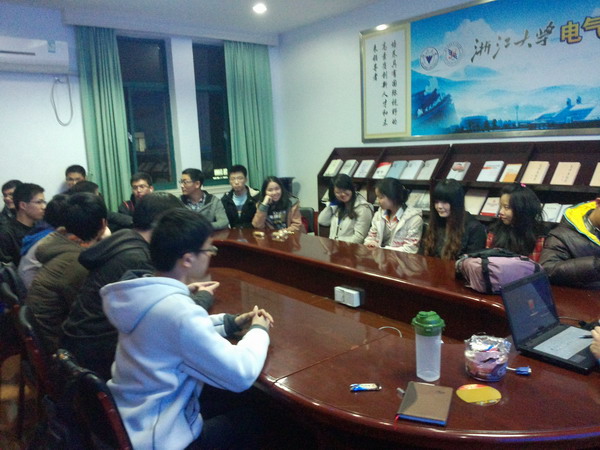 活动从电气1004党支部支部书记朱炜同志对这次支部对接活动的简略介绍开始,然后对接双方党支部的党员及积极分子做了简单的自我介绍、增进了相互之间的认识。之后将两支部成员进行分组,结成对子进行一对一交流。蓝田第七党支部确认和预确认到电气学院的同学较多,所以交流起来也比较容易和深入。交流的内容主要围绕着人生理想及目标、大学生涯规划和职业规划、爱好特长、参加过的学生工作以及获得荣誉,更包括如何做一名优秀党员、如何体现党员的先锋模范作用、如何在创先争优活动中促进自己成才等。最后我们还让徐兵同学分享了参加学科竞赛和科研训练的心得体会,由孙志成同学介绍了学院在成绩、保研等方面的政策,让学弟学妹们对电气学院的学习生活有了更为深入的了解。