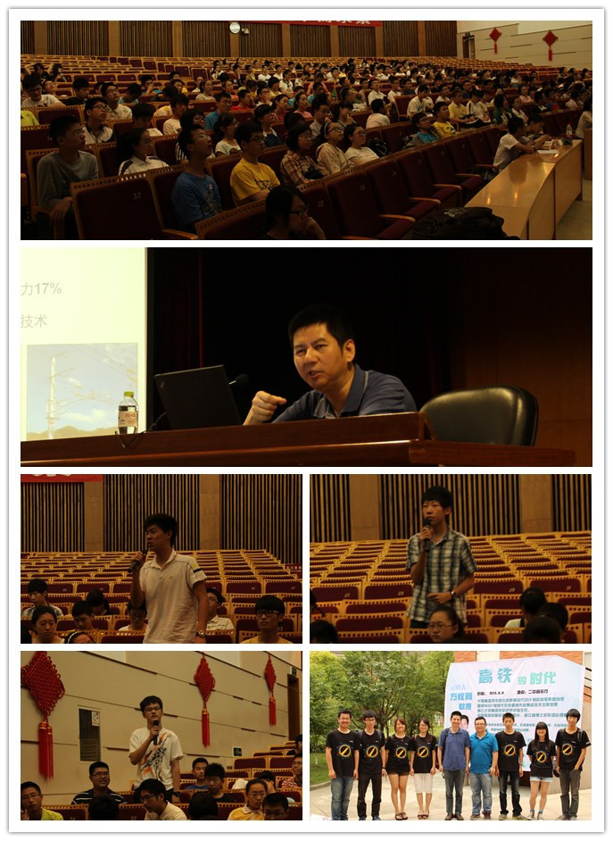 很快五十分钟的讲座就结束了,同学们还意犹未尽,争相向方教授提问。有位同学问道:“为什么国家如此重视发展高铁,而不重视飞机和航海呢?”方教授从高铁的票价、便捷性、环保性等等方面做了详尽的解释。还有同学请方教授对723温州动车事故作出评价,方教授以他独到而深刻的见解这样回答:“据我所知,温州动车事故是在动车低速行驶时发生的,因此与高铁的超高速度无关;而究其原因,更多的是管理方面的,应该去完善高铁的驾驶和管理方面;最后,这是一项造福人类的技术,不应该因噎废食,而是应该更加努力地研究高铁,将暴露出来的问题一一解决!”方教授还以一个生动的例子来说明发展高铁的重要性:“全球的地铁营运仅香港地铁有盈利,但是各大城市仍在不断地修建地铁,是因为人们需要它!失去了地铁,东京、伦敦等等大城市根本无法正常运作。正如地铁的重要性,高铁是人们远途出行的必需方式,是时代持续发展的保障!”