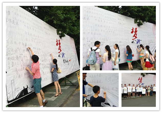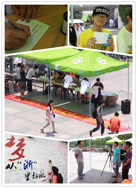 随着“梦·宣”活动的结束,系列活动的第二部分——“梦·动”浙大也缓缓拉开了序幕。明信片和文化衫作为大学生喜闻乐见的传播载体,有较强的流动性、传播性,以浙大求是和中国梦想为主题的图案加之铿锵有力的梦想口号,构成了浙大人“跳跃的梦想”。梦想传递现场活动分别于16日紫金港文化广场和17日玉泉永谦广场魅力启航。活动现场广大师生纷纷将自己的梦想书写在了梦在浙大的喷绘、横幅以及梦想主题明信片上,无数浙大师生的梦想共同构成“求是梦想墙”,让年轻的梦想、浙大的梦想乃至中国的梦想在求是园里熠熠生辉。还有一些师生在参与活动书写梦想的同时,还接受了我们工作人员的访谈,有的向我们详细阐述了他们一路成长过程中的点滴梦想,也有人在展出的梦想宣言当中找到了自己的共鸣。熙熙攘攘的人流,热闹繁忙的现场,梦想虽不是于这里酝酿,但却从这里开始传递。