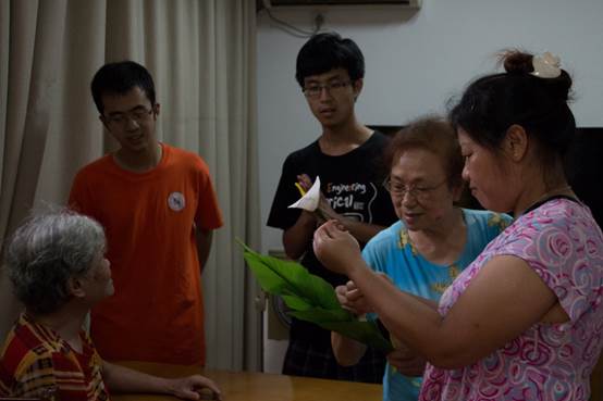 之后我们前往老年公寓的休息室,那里有几位老奶奶在用丝袜来编制假花,她们称之为丝袜花,编出来的花朵不仅惟妙惟肖,而且还富有一定的弹性,让我们大开眼界。其中一位老奶奶得知我们是从mg4355线路检查官网来的学生之后非常热情地与我们交谈,其中她谈到她是杭州遗体捐献俱乐部的成员,她和她家里的几位高龄老人都已经签订了遗体捐献的协议书,要为祖国的医学贡献自己的力量,这让大家都肃然起敬,暗暗钦佩。