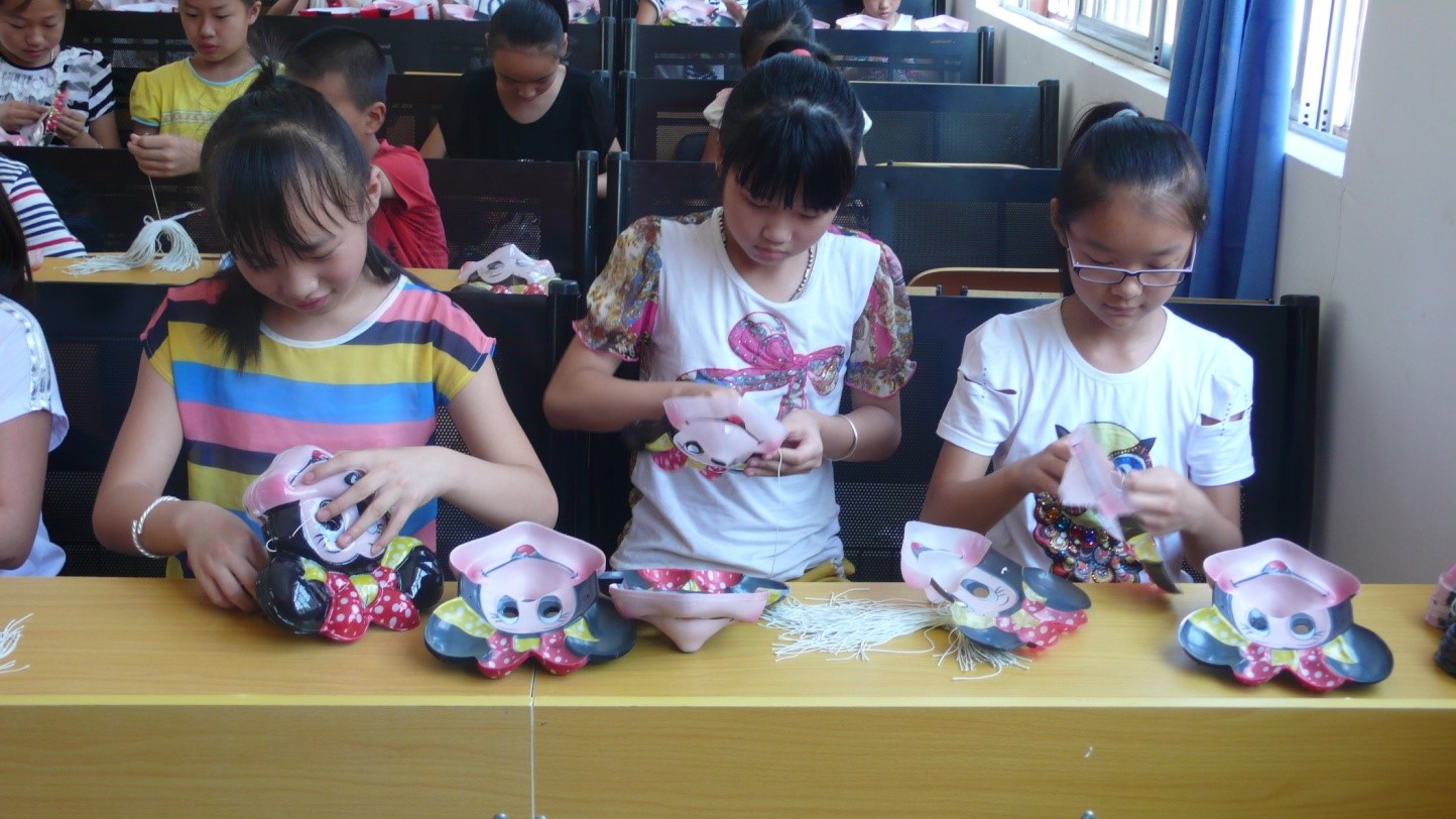 塔石乡本地有很多家面具加工作坊,需要劳动力完成一些制作工序,结合春泥课堂的宗旨,在制作面具,学习动手方法和面具艺术的同时;孩子们用自己的双手,创造价值,并将赚来的钱用于帮助困难家庭和孤寡老人,可谓一举两得。8月6号一大早,面具作坊的师傅就把一大袋的面具送了过来,孩子们所要做的工作,是在面具上穿上绳子。看似简单的工序,在实际操作起却是十分考验工作者的耐心和灵活度。当我十分吃力地穿好第一个作品时,有的同学已经完成了好几叠了,这里的孩子们在家里就经常帮家长一起干活,十分能干懂事。我们大学生也应该向他们学习这些品质,独立自主,自力更生,慢慢地用自己的劳动养活自己。忙碌而又充实的两个小时很快过去了,看着孩子们一大袋的成果,我为他们竖起了大拇指。