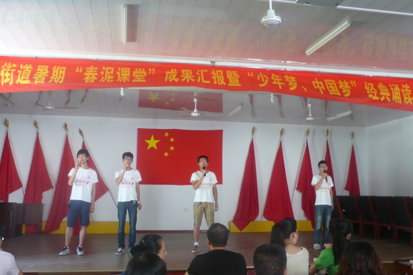 千呼万唤始出来,经过了紧锣密鼓的排练,2013年塔石街道春泥课堂成果汇报暨“少年梦,中国梦”经典诵读比赛终于在塔石街道文化礼堂拉开了序幕。塔石街道组宣委员叶莲娟、街道团工委书记叶菁菁、街道妇联主任游晓霞,塔石中心小学校长朱承法、副校长瞿巧华,mg4355线路检查官网辅导员周伟辉,以及参加本次春泥课堂的所有学生、家长和老师,参加了本次成果汇报。经过精彩纷呈的文艺演出和优美典雅的经典篇目朗诵比赛,成果汇报演出圆满结束,也为我们mg4355线路检查官网赴塔石街道实践团队一行四人的工作画上了一个圆满的句号。