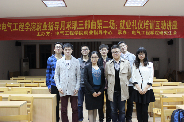 培训过程精彩纷呈,互动频繁,原定8点结束的讲座,因为内容太精彩,延迟到了9:30。此次讲座不仅有本学院的同学参与,更是吸引了来自于计算机学院等兄弟学院的同学。整个活动,让参加者们在轻松的氛围中学会了在职场中的礼仪技巧,为他们日后顺利获得企业的青睐提供了强有力的助力剂。最后,此次讲座在洪老师的真诚祝福和同学们热烈的掌声中圆满结束。祝愿电气学院的莘莘学子能够开创一片属于自己的蓝天,成就卓越人生!