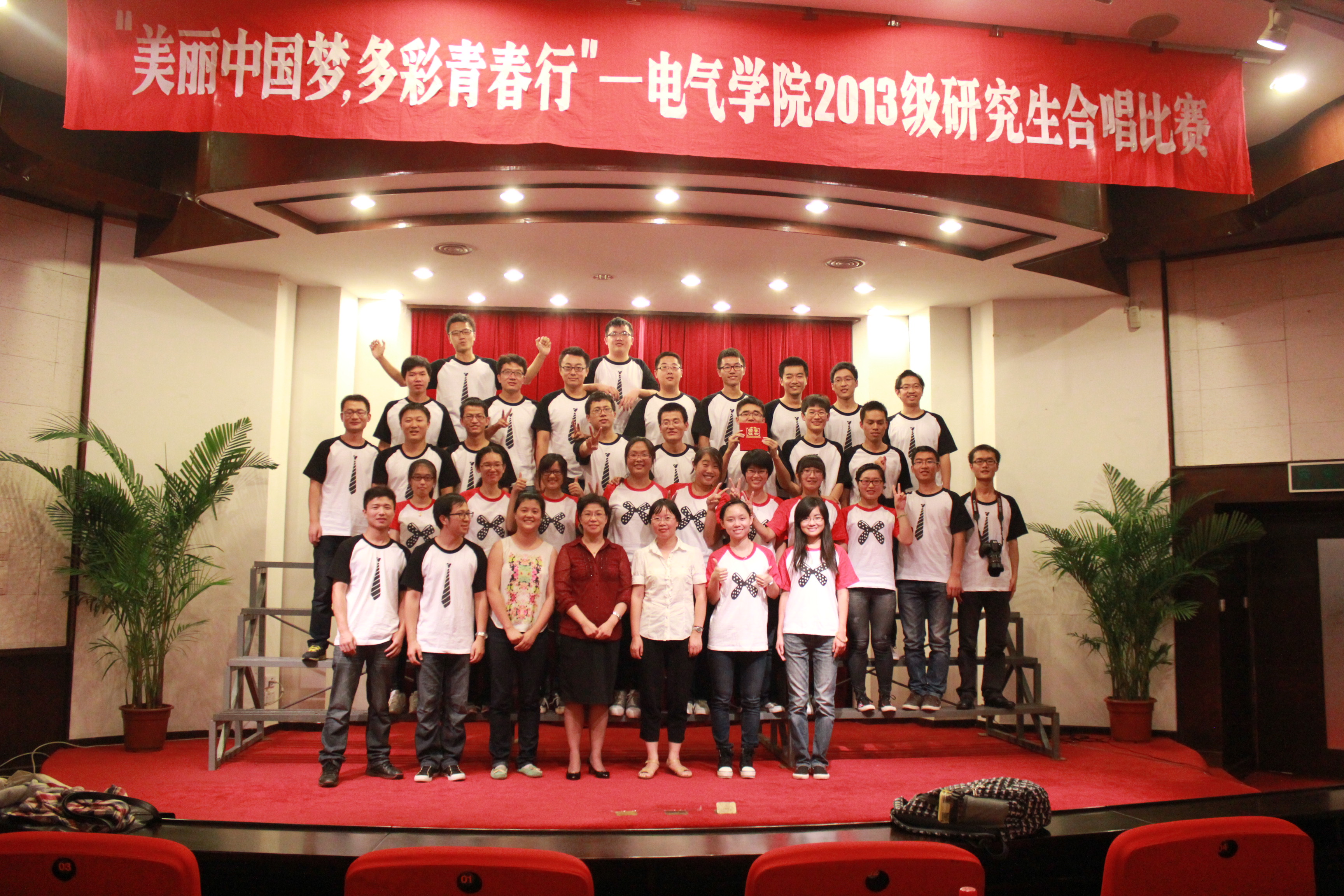 刚步入研究生生活的我们,对这个陌生而又令人向往的地方满怀好奇与激情。为了增进同学间的了解,增强班级凝聚力学院组织大合唱比赛,电机与电器13硕支部积极响应学院号召,组织同学们参加排练为大合唱做准备,在文琴团成员和12级学长的指导下,支部在十余天的准备阶段里一共彩排了五次,最终,在同学们一次次的努力排练和学长的指导下,取得了第二名的好成绩,通过这次大合唱,支部同学间相互增进了了解,班级凝聚力得以加强,更重要的是这样一次共同为集体荣誉奋斗的经历,也让整个支部的同学都有了一种强烈的归属感,也就是从这个时候开始,同学们开始将这个支部当成一个温暖的大家庭。