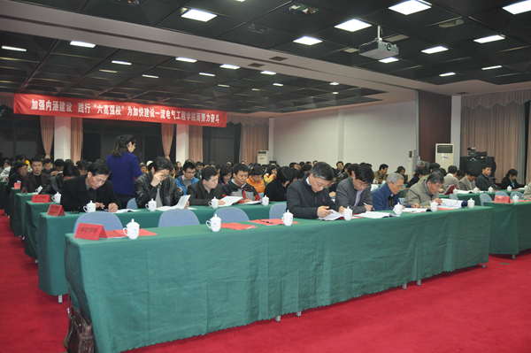 党委书记王瑞飞结合电气学院的实际情况,作了学院党委的工作报告。报告回顾了过去三年中学院党委的工作,并全面分析了电气学院目前面临的形势和存在的问题,希望学院全体师生员工在今后的工作中高举邓小平理论和“三个代表”重要思想伟大旗帜,全面落实科学发展观,深入贯彻党的十八大会议精神,解放思想、改革创新,坚持一个目标前进,实现两个重点突破,推动三个显著提升,达到四个明显改善,为学院再创辉煌。